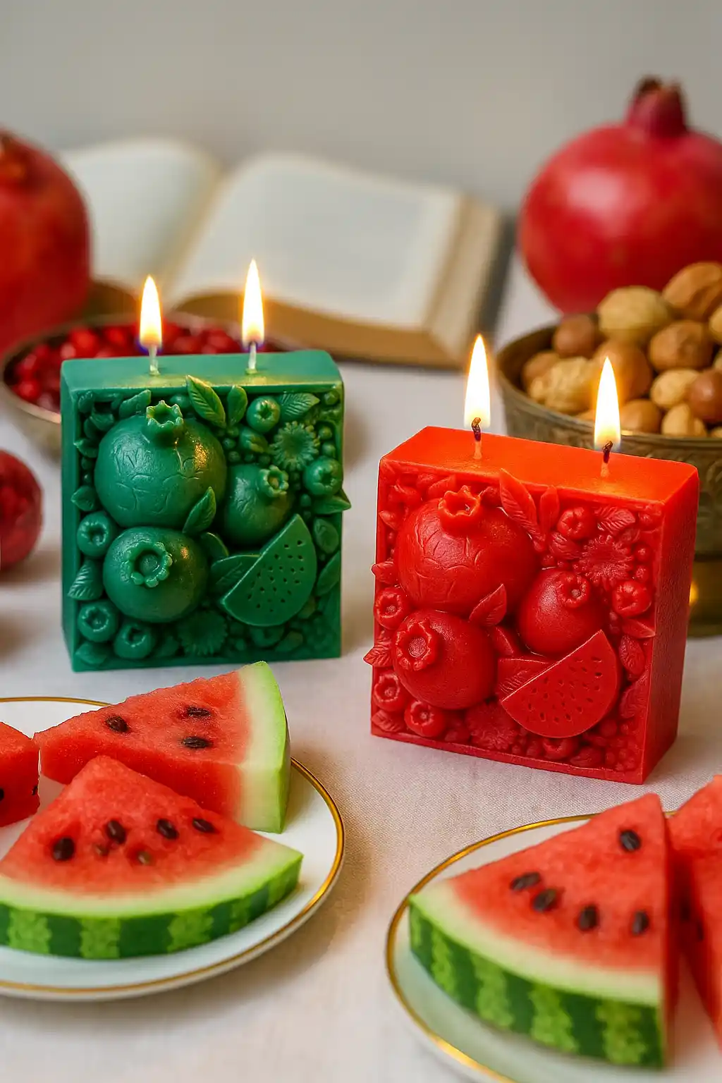 مناسب برای هدیه و دکور: شمعهای کتیبه و طرحهای یلدایی گزینهای عالی برای هدیه به عزیزان یا چیدمان حرفهای سفره یلدا هستند.